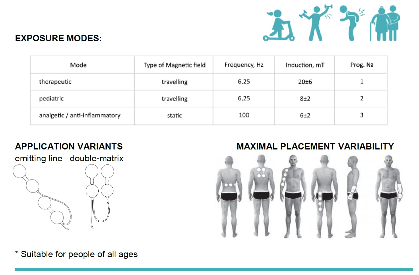 ALMAG ACTIVEis intended to provide physiotherapeutic treatment of pain as well as recovery and rehabilitation measures using a low-frequency pulsed magnetic field, either in medical facilities or at home, upon the recommendation of a physical medicine and rehabilitation physician.